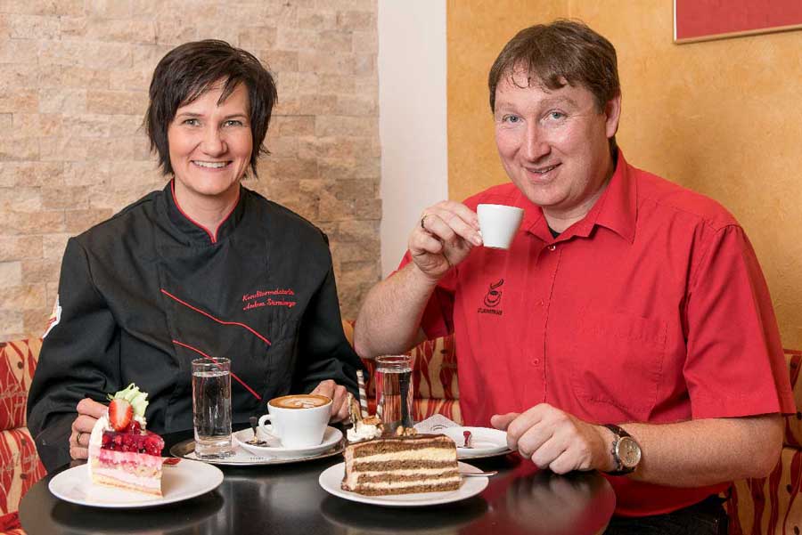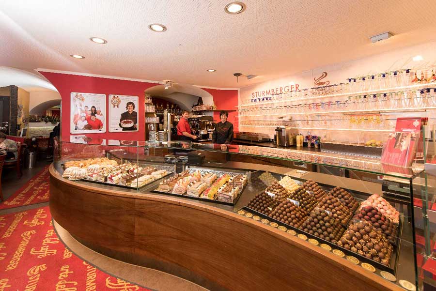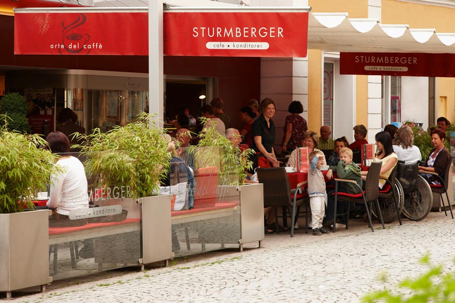 Die große Sturmberger Werbewand vor unserer Backstube weist ihnen den Weg. Direkt vom Parkplatz gelangen sie in den hinteren Gastgarten und natürlich auch ins Lokal.